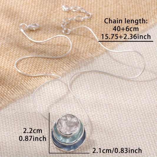 Elegante collar con colgante de esmalte azul para hombre, aleación de zinc con detalles dorados, diseño de cadena trenzada, accesorio sofisticado para atuendos formales o informales.